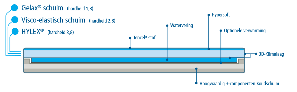 Innovatief hoog-elastisch schuim met een hoog aanpassingsvermogen.- Zeer veerkrachtig